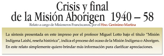 considera ya INEXISTENTES LAS MISIONES CON ABORIGENES, interrumpiendo