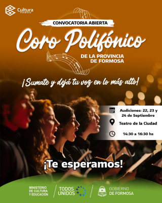 El Gobierno de la Provincia de Formosa abre la convocatoria para integrar el Coro Polifónico Provincial.