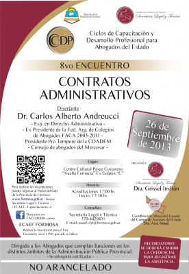 Se abordara el Tema: Contratos Administrativos. Disertante: Dr. Carlos Alberto Andreucci.
