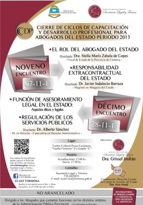 TEMAS : "La Función de Asesoramiento Legal en el Estado" y "Regulación de los Servicios Públicos", a cargo del Dr. Alberto Sánchez- Especialista en Derecho Administrativo