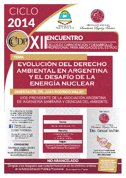 Tema: "Evolución del Derecho Ambiental en Argentina y el Desafío de la Energía Nuclear" 1-Introducción. 2-Marco Jurídico Ambiental. 3-La Actividad Nuclear y su regulación. 4-Síntesis y conclusiones. |