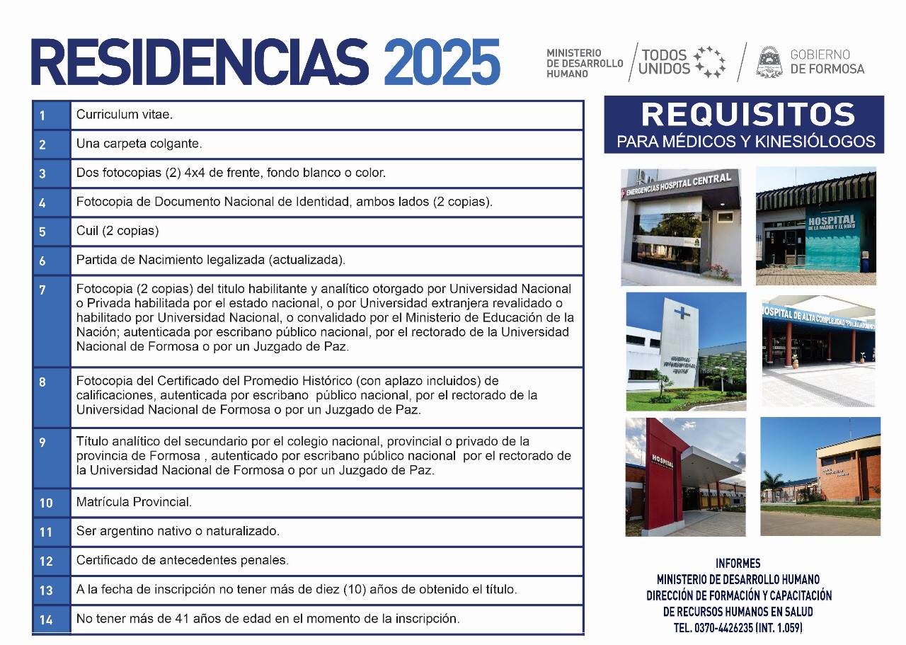 Nombre Categoría Seleccione ResidenciasResidencias MédicasResidencias de EnfermeríaResidencias en AnestesiologíaResoluciones - Ministerio de Desarrollo Humano Residencias Médicas y de Kinesiología 2025 Categoría: Residencias Médicas Descargar Fuente: Ministerio de Desarrollo Humano