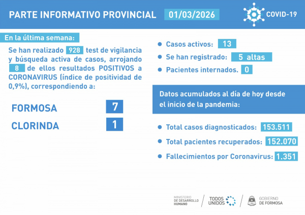 Esta semana los casos de COVID-19 se mantuvieron sin cambios